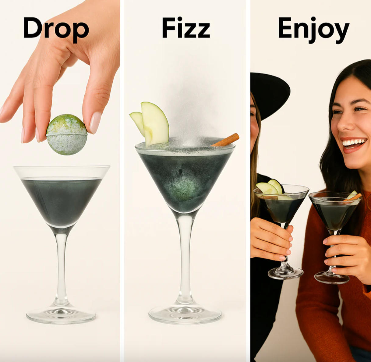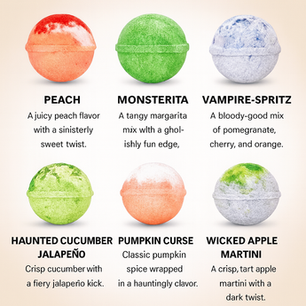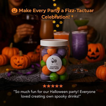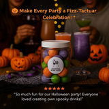 Unleash a little magic at your Halloween party with our Halloween Cocktail Bomb Jar. Inside, you’ll find 30 cocktail bombs in 6 spook-tacular flavors, each fizzing, glittering, and transforming your drink into a wickedly delicious mocktail or cocktail. Just drop a bomb into sparkling water, watch the haunting fizz, and enjoy as a mocktail or add your favorite spirit for a cocktail. Perfect for Halloween parties, spooky get-togethers, or as a festive gift!