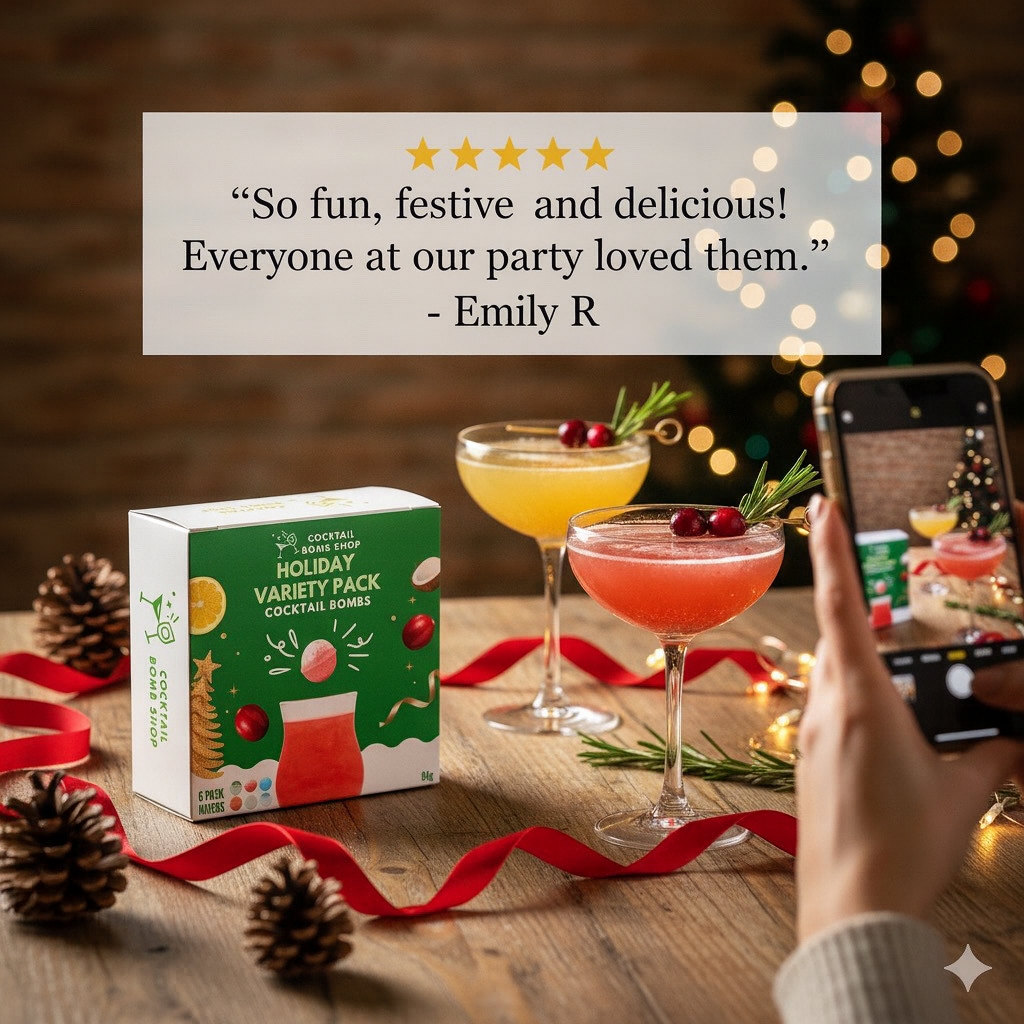 Look no further than our HOLIDAY VARIETY PACK™! Each cocktail bomb is bursting with flavour and sparkle, guaranteed to make your taste buds dance with delight.