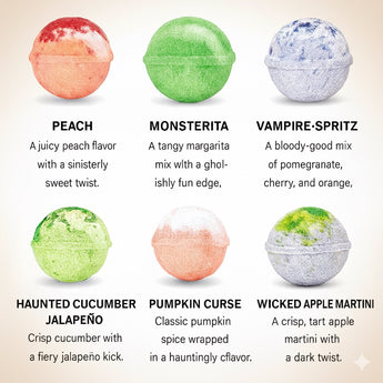 Unleash a little magic at your Halloween party with our Halloween Cocktail Bomb Jar. Inside, you’ll find 30 cocktail bombs in 6 spook-tacular flavors, each fizzing, glittering, and transforming your drink into a wickedly delicious mocktail or cocktail. Just drop a bomb into sparkling water, watch the haunting fizz, and enjoy as a mocktail or add your favorite spirit for a cocktail. Perfect for Halloween parties, spooky get-togethers, or as a festive gift!