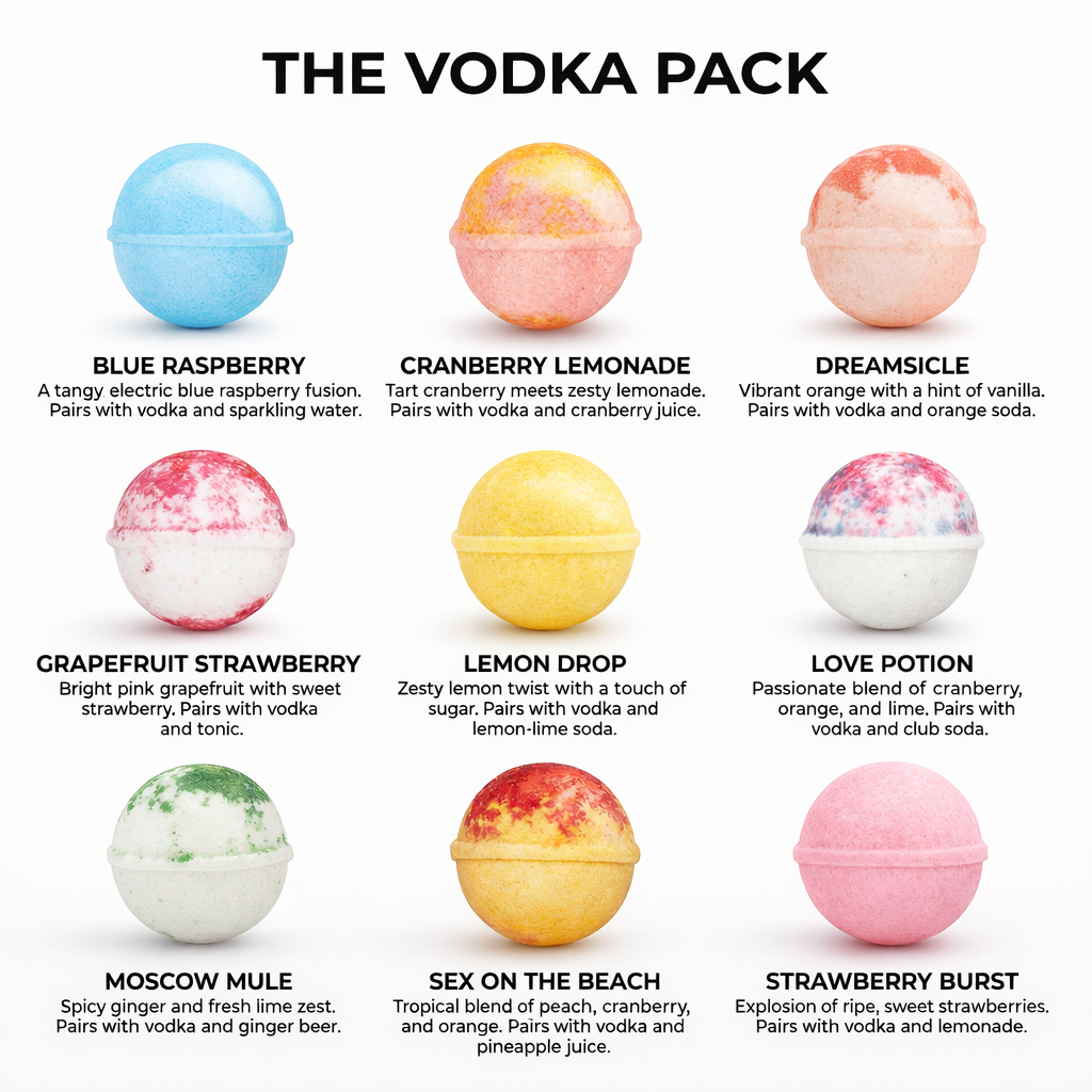 With 9 flavors and 30 total bombs, you will have endless ways to explore, discover, and enjoy vodka friendly drinks at home.