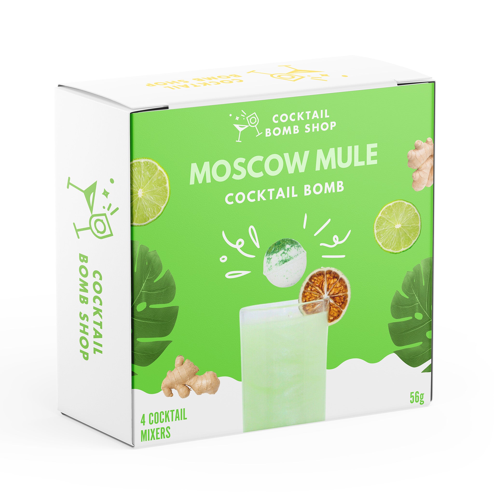 Each cocktail bomb fizzes with vibrant colour, gentle shimmer, and bright citrus flavour, making it perfect for parties, gifting, or elevating your cocktail game with a clean, refreshing mule style sip.