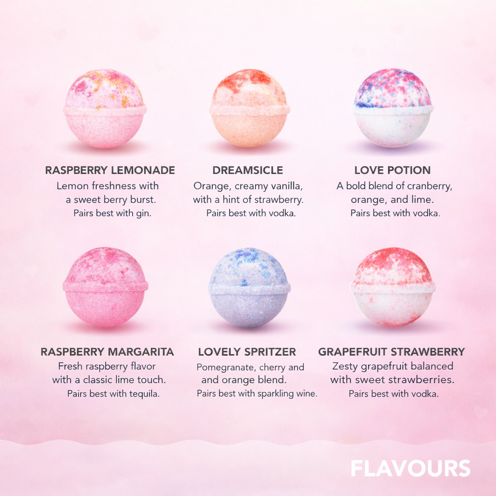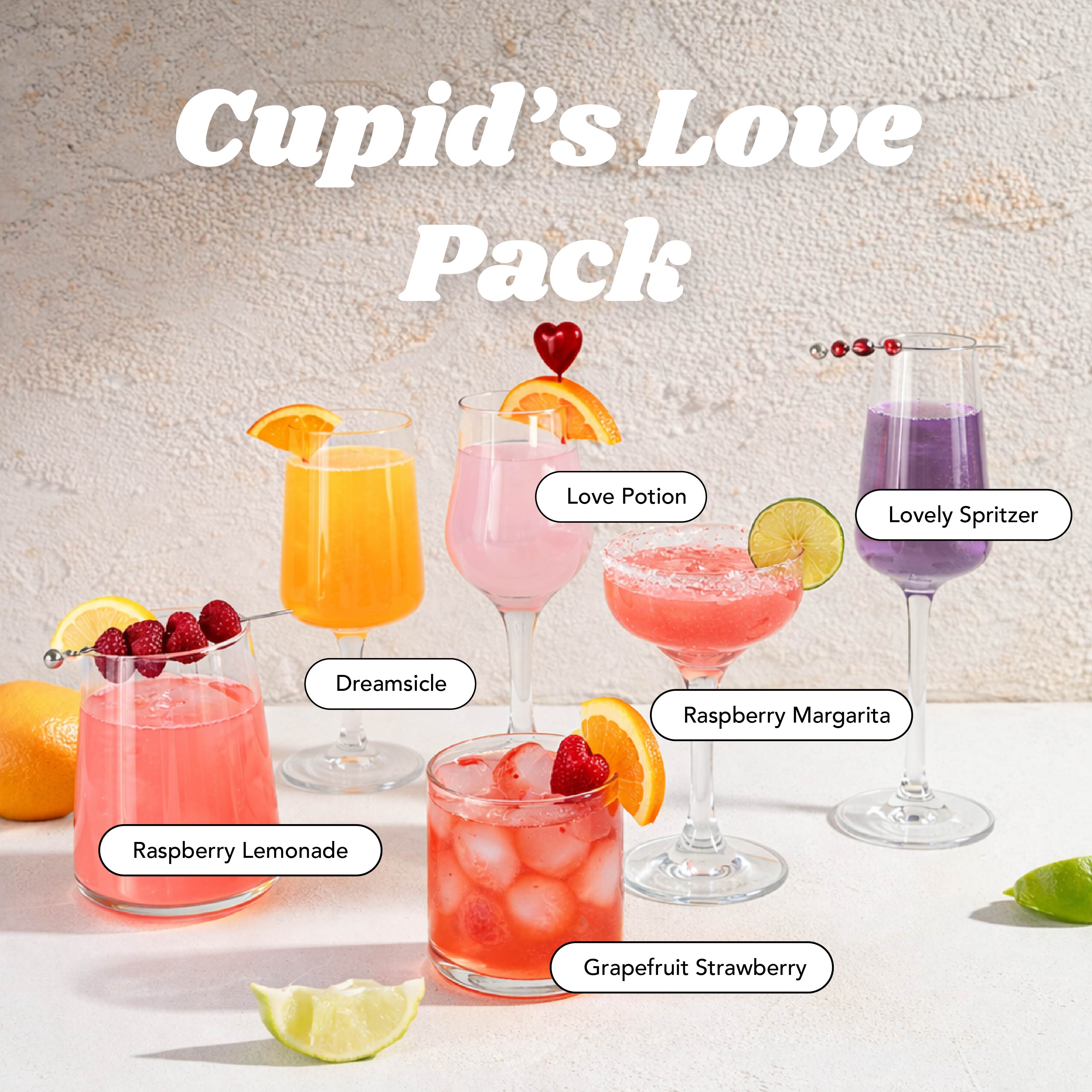 Prêt à tomber sous le charme dès la première gorgée ? Découvrez le Pack Amour de Cupidon™, une collection de bombes à cocktails en édition limitée et onirique comprenant six saveurs artisanales à tomber par terre Créé exclusivement pour transformer l'eau gazeuse en boissons sucrées et séduisantes en quelques secondes.