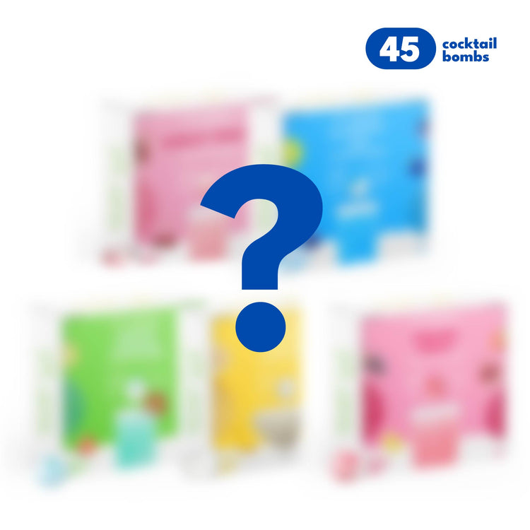 Vous aimez un peu de mystère à chaque gorgée ? Découvrez le Coffret mystère™, une collection de bombes à cocktails passionnante comprenant 45 bombes artisanales aux cinq saveurs surprises Sélectionnés avec soin par notre équipe pour un maximum de variété et de plaisir.