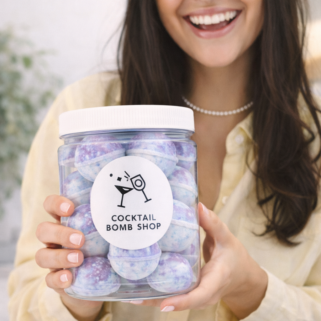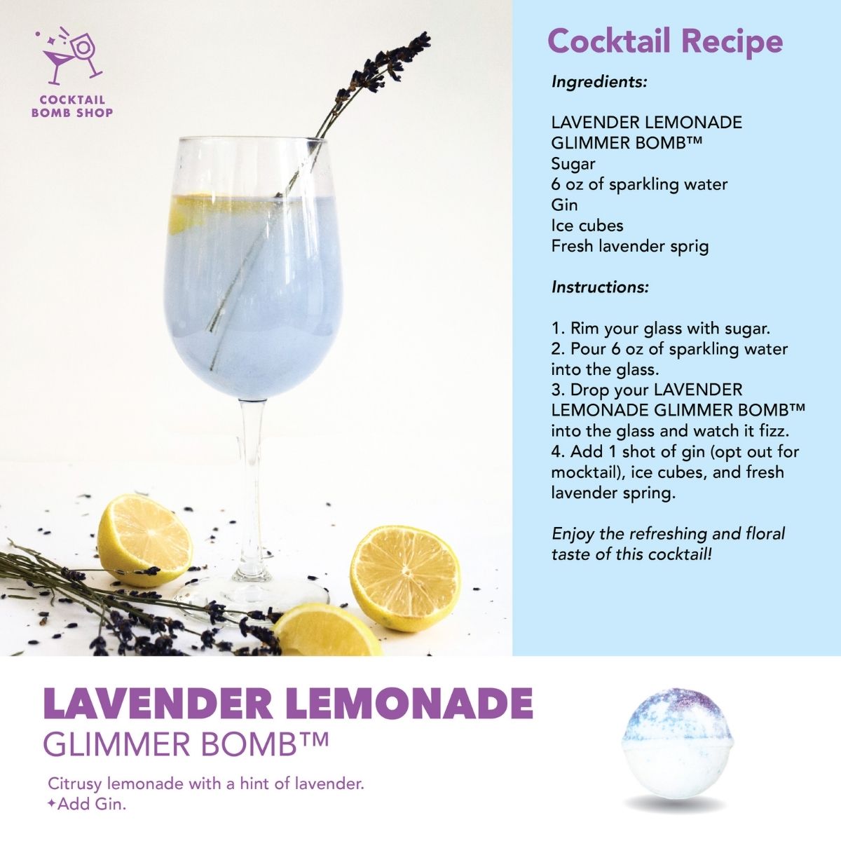 Bright lemonade meets soft lavender in this soothing jar of 30 handcrafted cocktail bombs, transforming sparkling water into a lightly floral sip that feels calm, refined, and beautifully balanced.