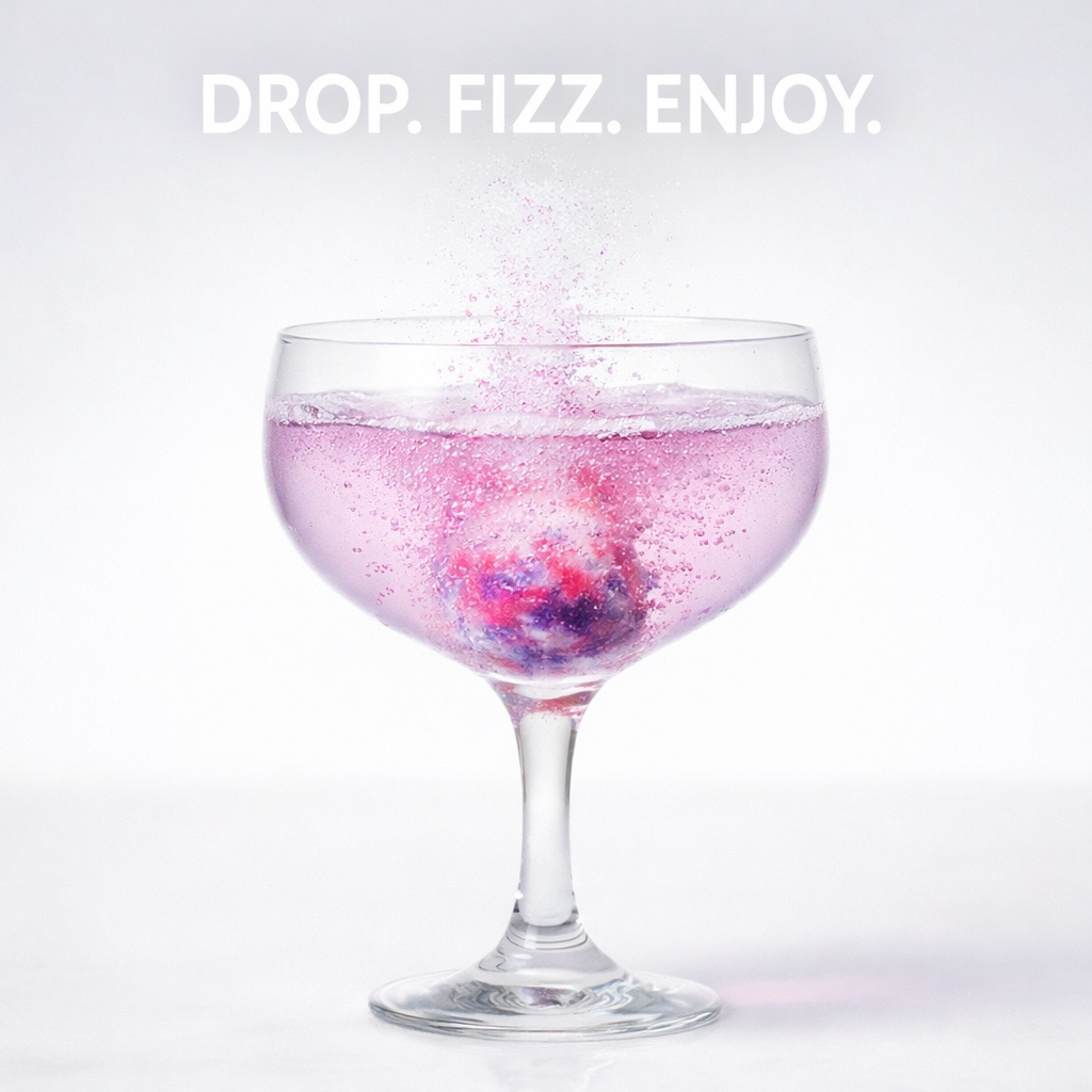 Step 2: Drop your bomb in 6 oz of sparkling water.