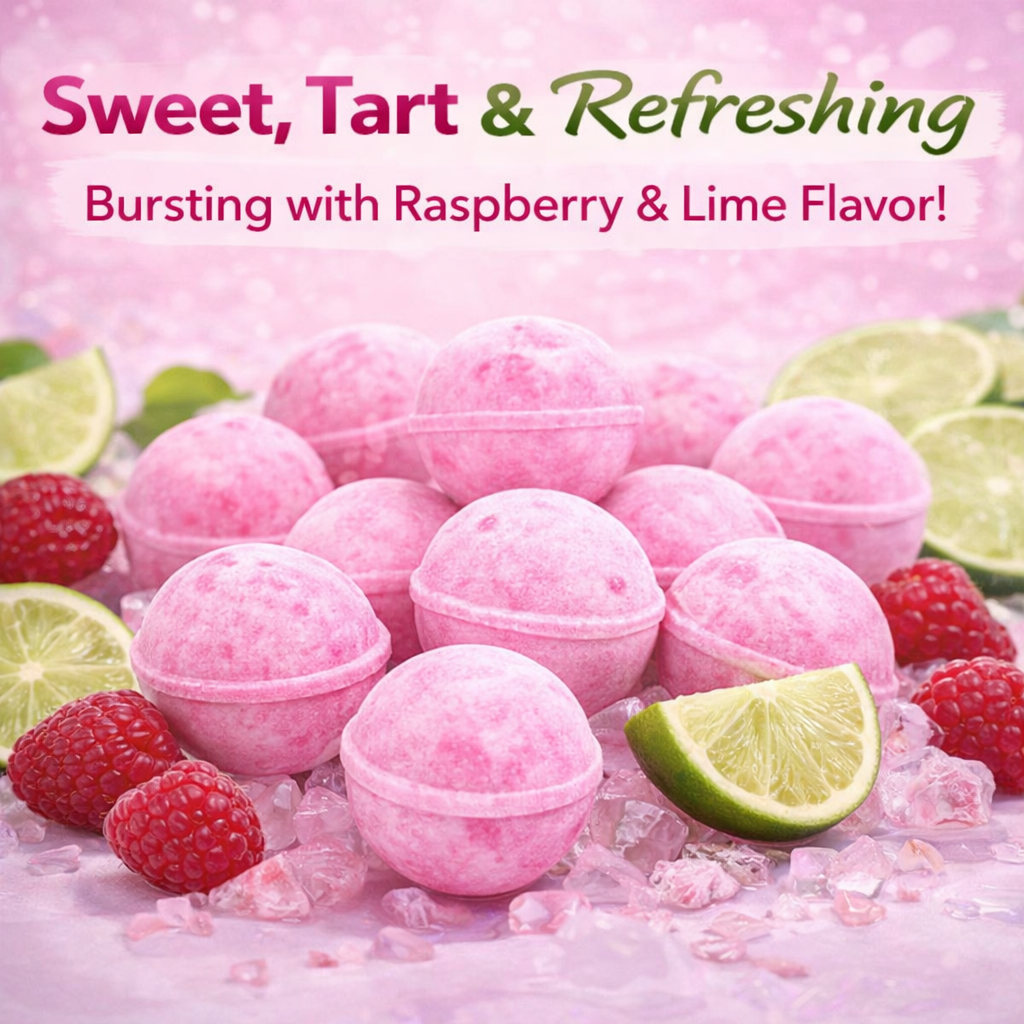 Juicy raspberry and bright lime come together in this lively jar of 30 handcrafted cocktail bombs, instantly turning sparkling water into a refreshing sip with classic margarita character and a fruity twist.